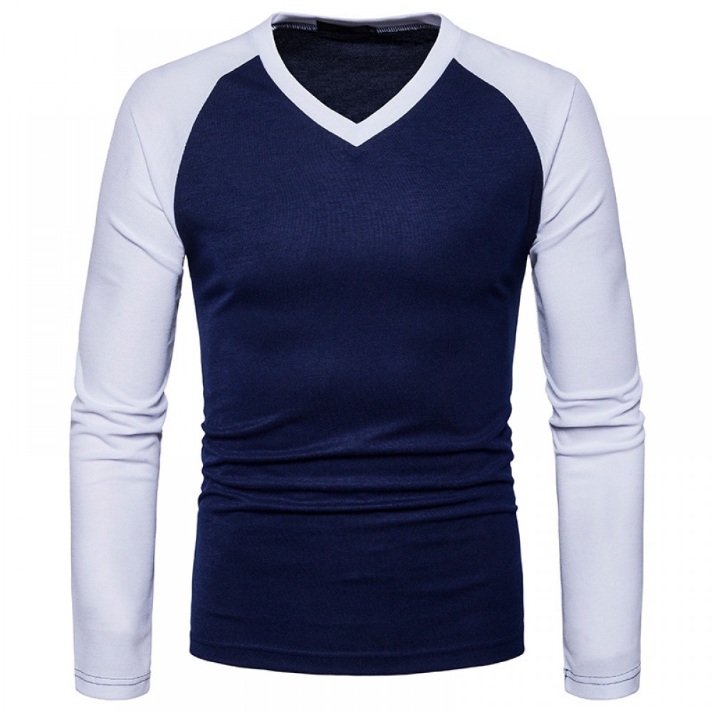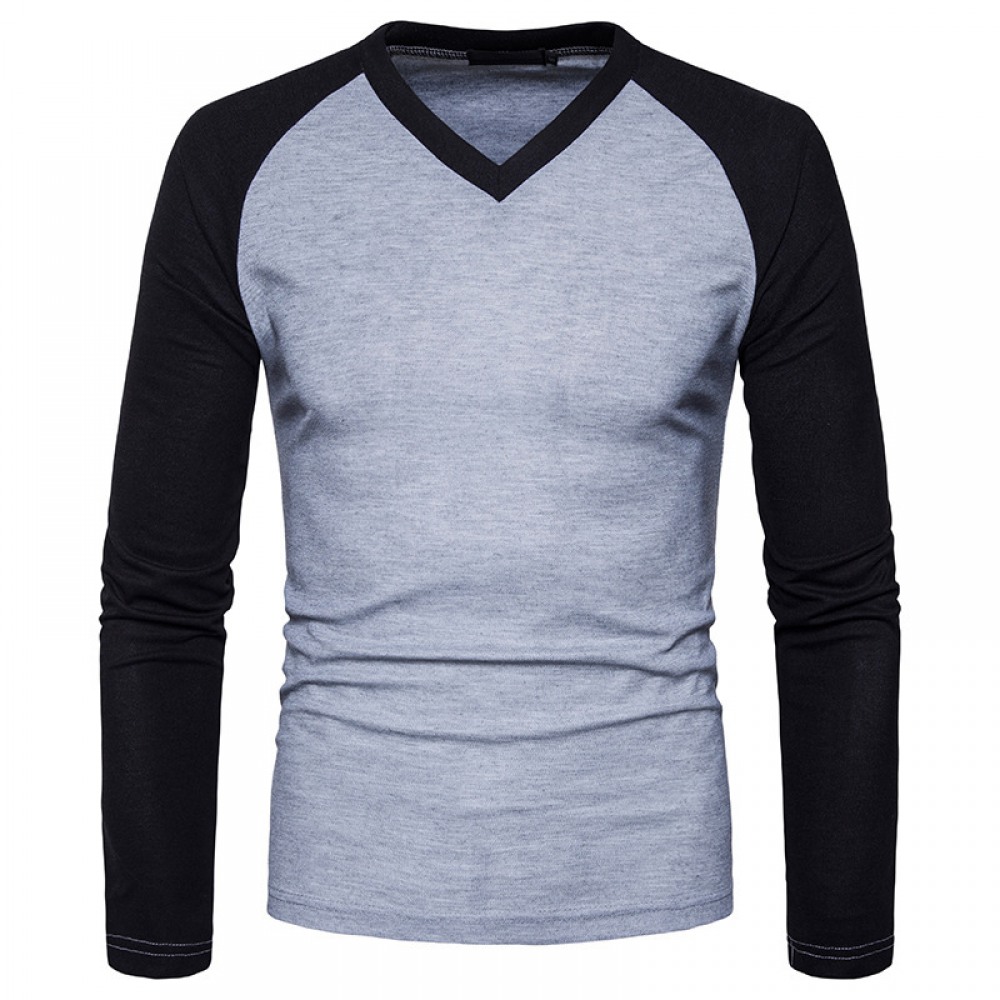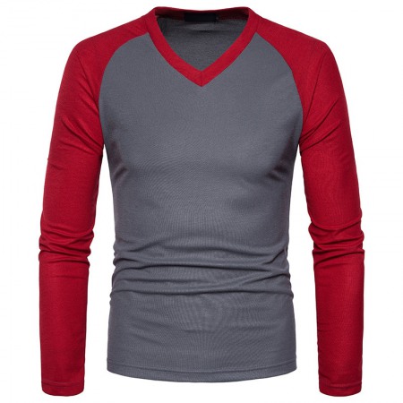 Men's Casual Contrast Color Slim Long-Sleeved T-Shirt Bottoming Shirt