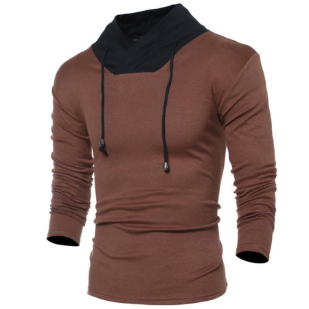 Men's Fashion Hooded High Collar Skull Stitching Long-Sleeved T-Shirt Men's Long-Sleeved T-Shirt