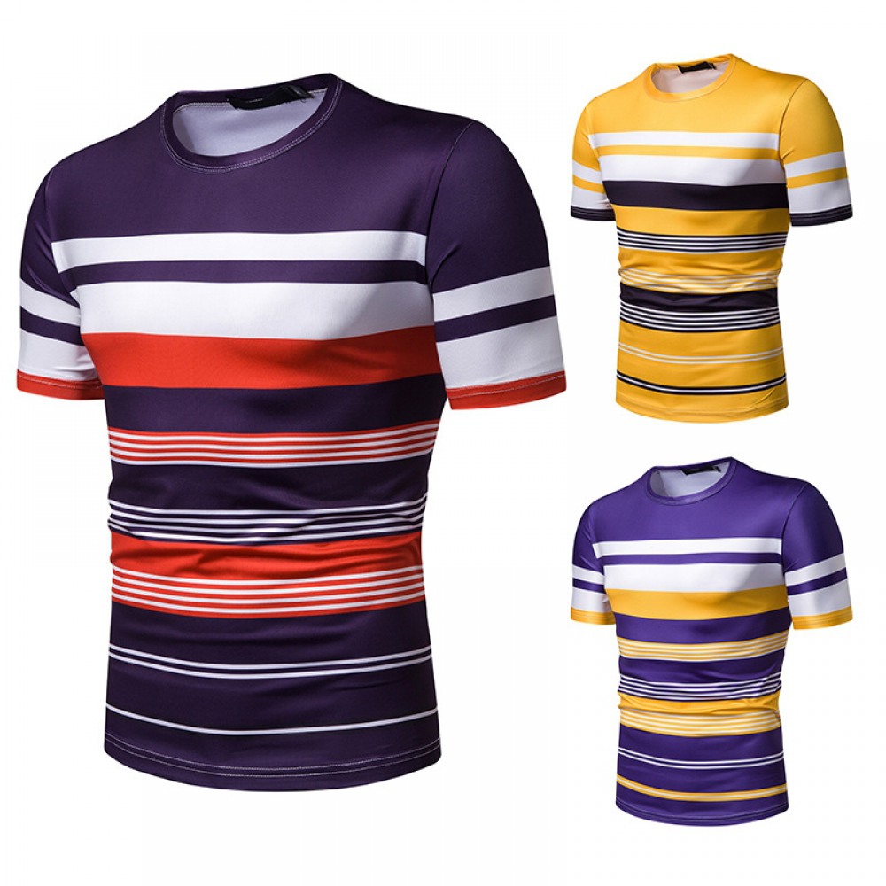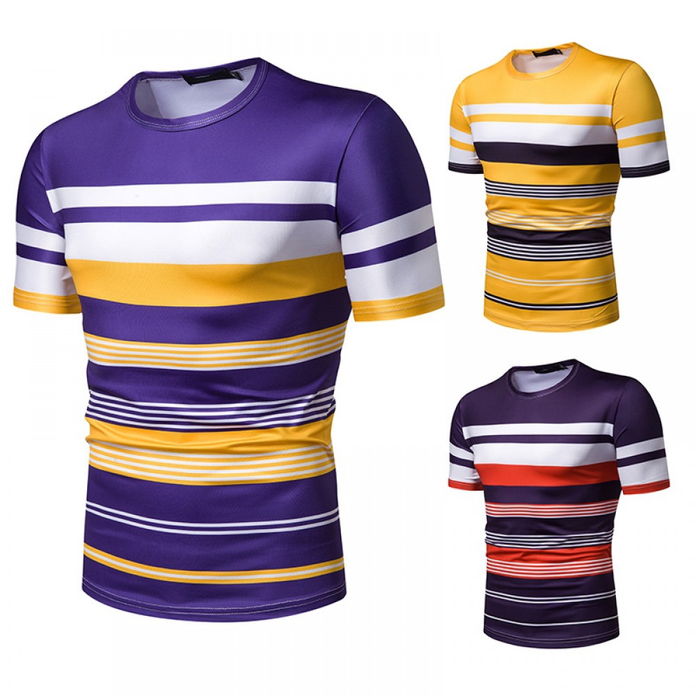 Men's Short-Sleeved T-Shirt Mens Contrast Striped Slim-Fit Casual T-Shirt