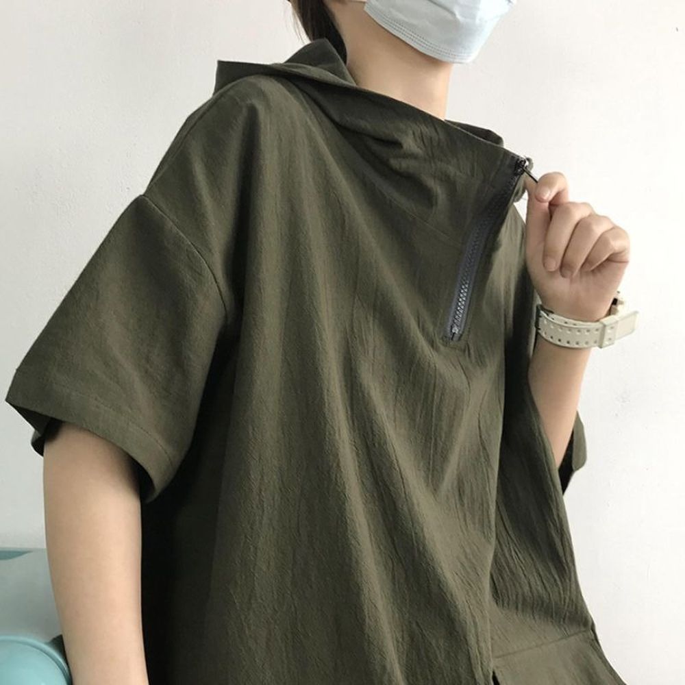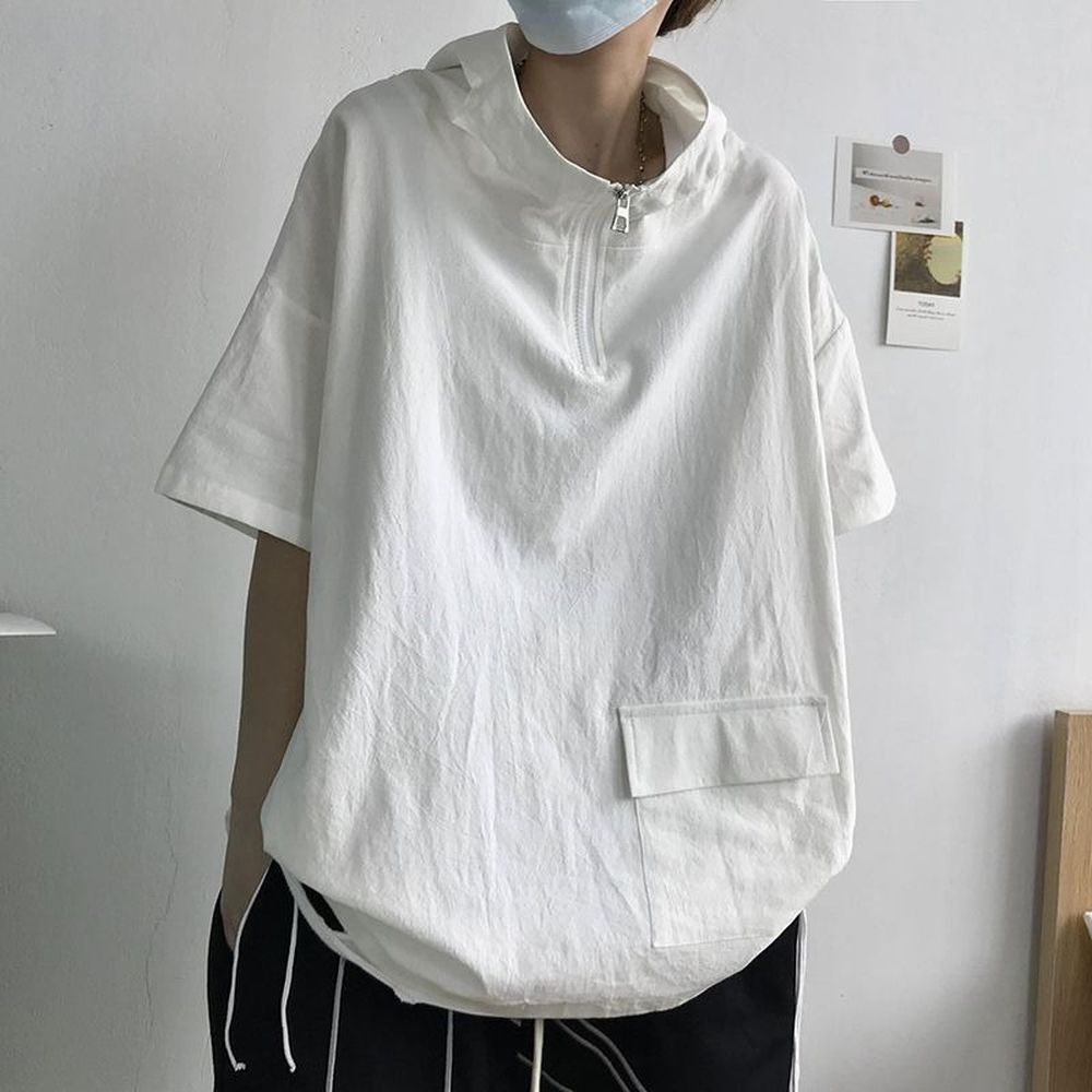 Men's Summer Half-Zip Hooded Short-Sleeved T-Shirt