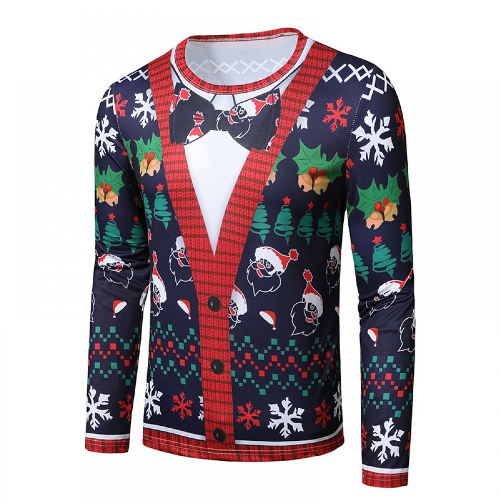 New 3D Personality Printing Fashion Men's Christmas Long-Sleeved T-Shirt