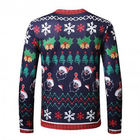 New 3D Personality Printing Fashion Men's Christmas Santa Pattern Long-Sleeved T-Shirt
