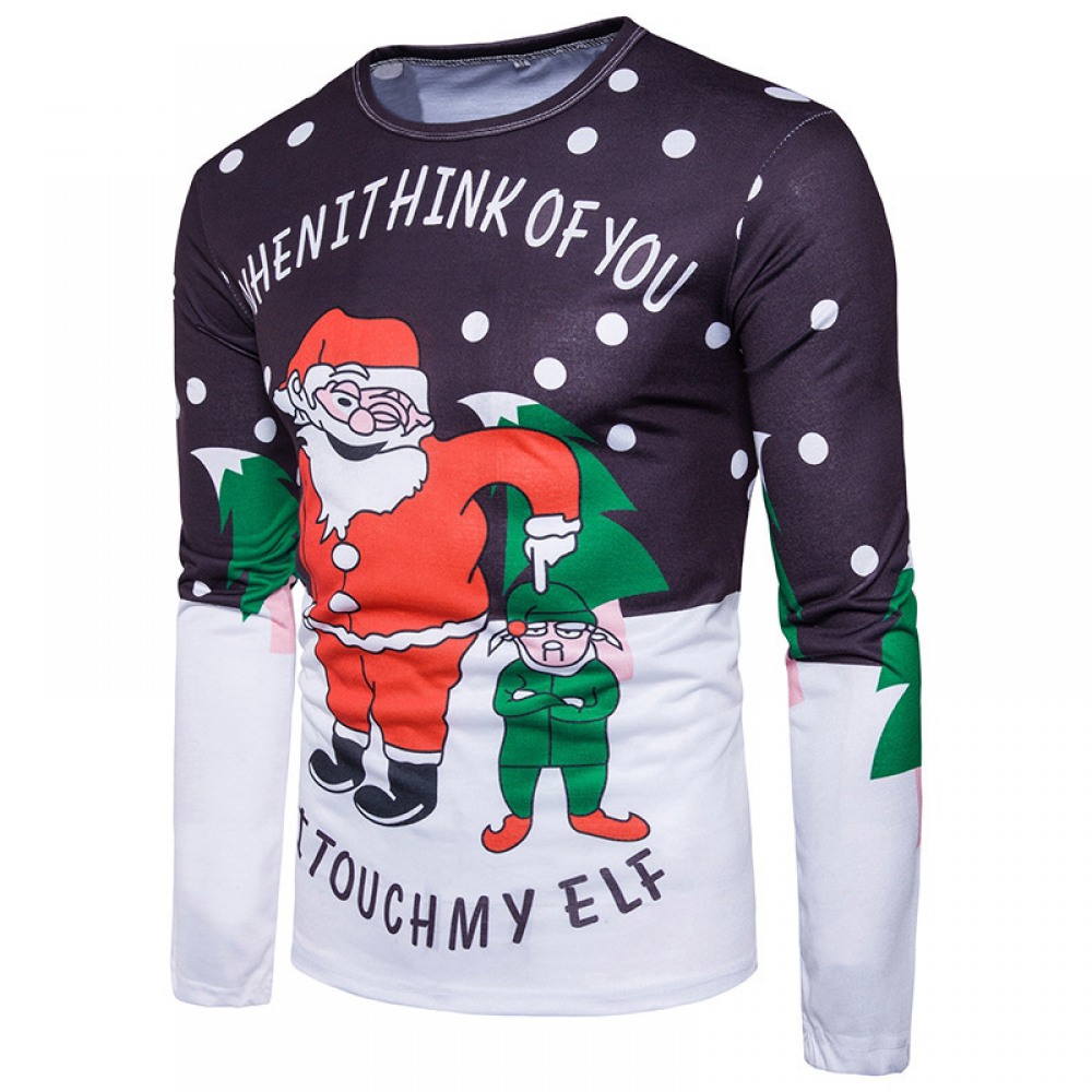 New Festive Santa and Villain Jacquard Men's Printed Long-Sleeved T-Shirt