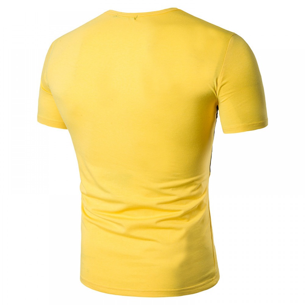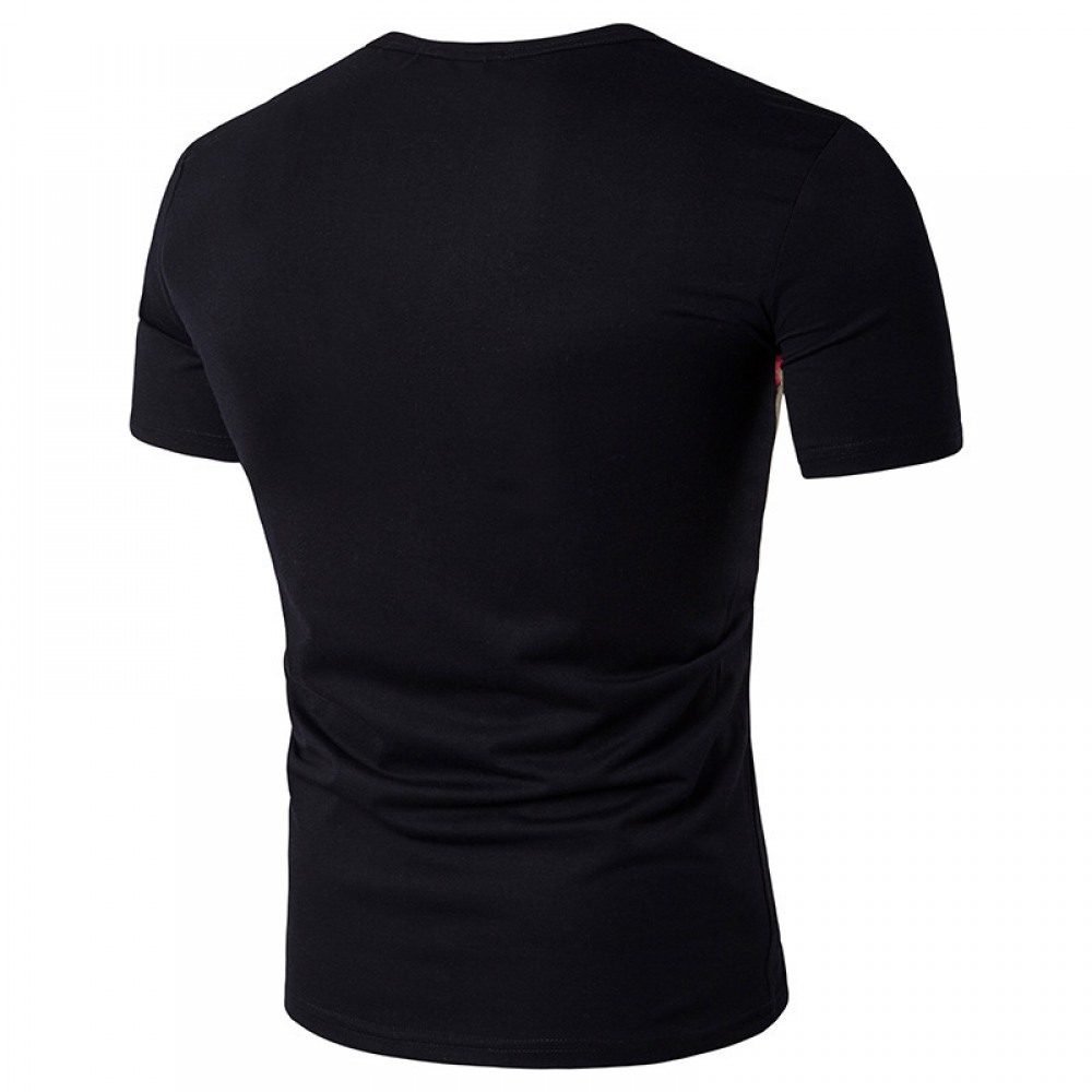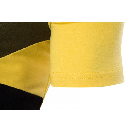 Summer New High Street Personality Cuff Striped Placket Stitching Men's Lapel Short Sleeve T-Shirt