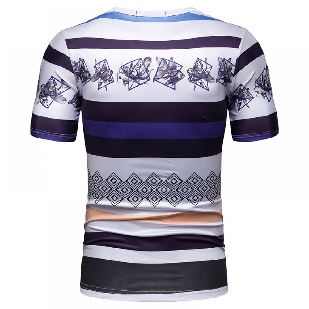 New Summer Men's Short-Sleeved T-Shirt Men's Contrast Striped Slim Casual T-Shirt