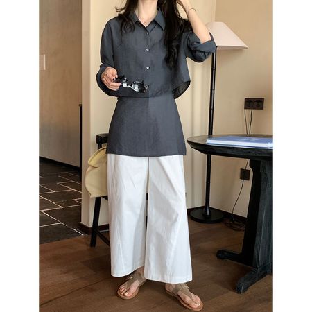 Thin Long-Sleeved Shirt Suspender Top Two-Piece Suit For Women