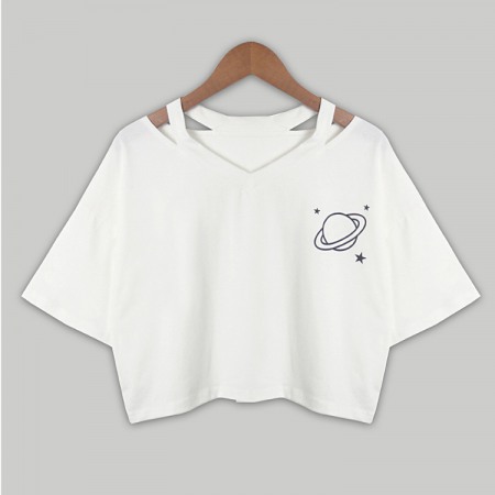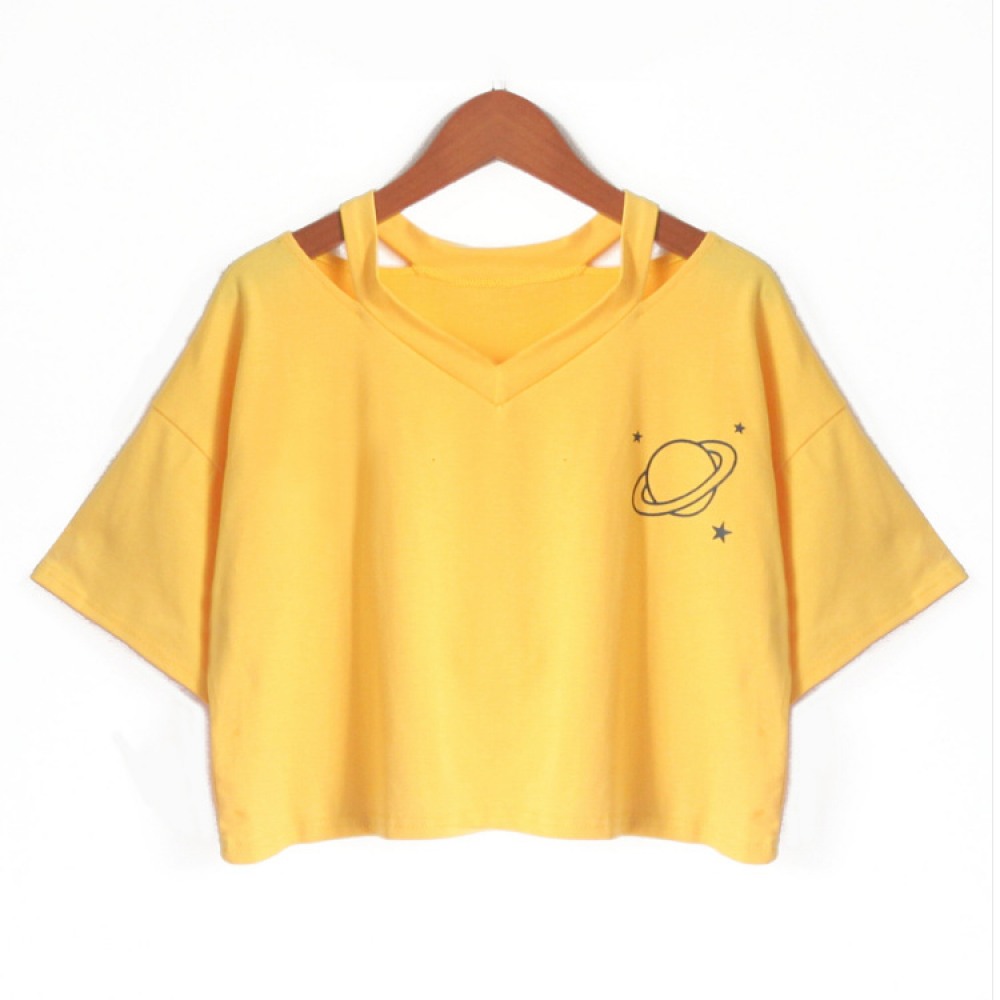 Summer Hot Sunflower Print V-Neck Short T-Shirt